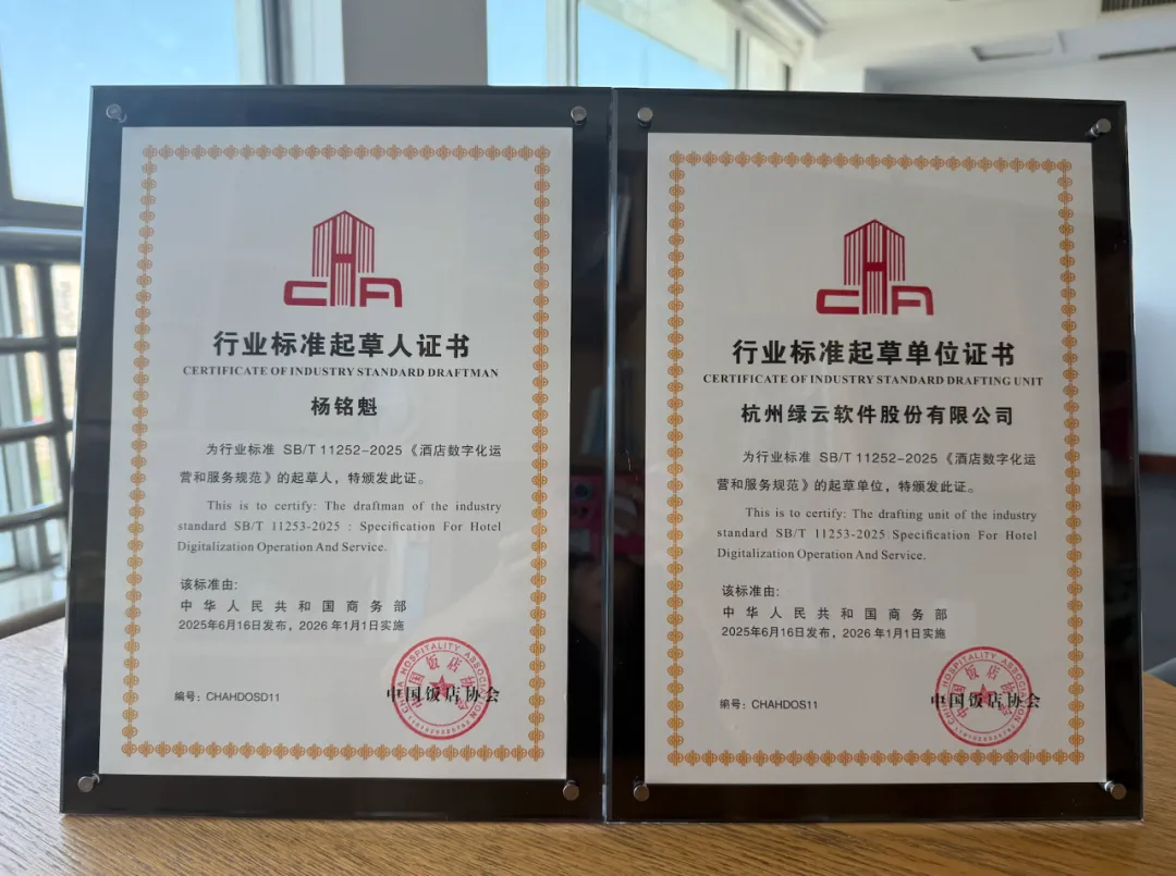 在中国饭店协会主办的“饭店业数字化与ESG发展专题发布会”上,《酒店数字化运营和服务规范》行业标准成为焦点。该标准由商务部于今年6月正式发布,绿云作为起草单位之一,与锦江、华为、腾讯、美团等企业共同参与制定。绿云董事长兼CEO杨铭魁出席发布仪式,并代表公司接受起草单位授牌。他表示,绿云多年来深耕酒店数字化全链路服务,尤其在云PMS、智慧入住、数字营销等核心领域的产品理念与实践积累,为标准的可实施性提供了重要支撑。