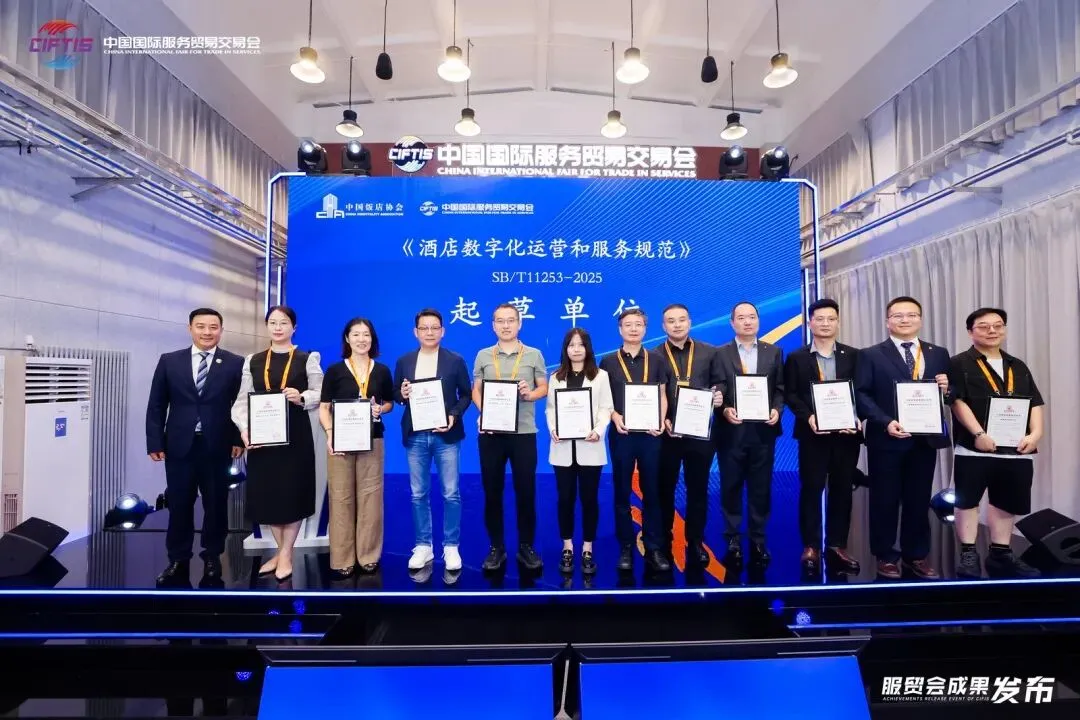 9月11日,2025年中国国际服务贸易交易会(简称"服贸会")于首钢园盛大开幕,杭州绿云软件股份有限公司(以下简称“绿云”)受邀参加,作为起草单位之一参与制定《酒店数字化运营和服务规范》行业标准。
